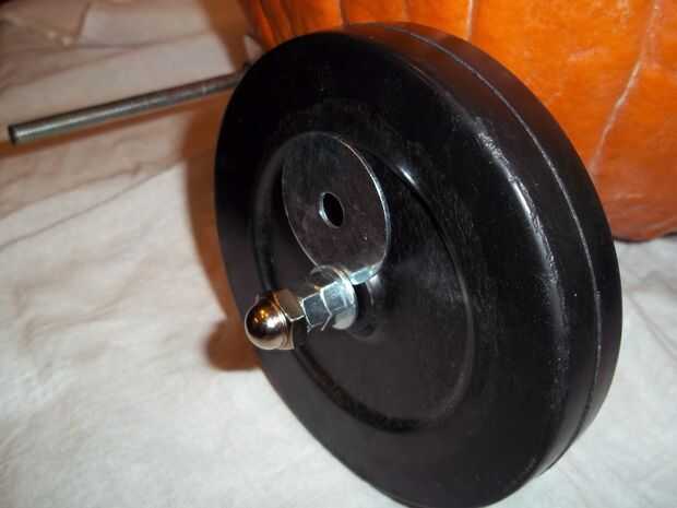 Me gustaria meter una arandela guardabarros entre la rueda y la arandela plana. La imagen explica este paso. Luego girar las dos tuercas en la arandela plana y hacer la tuerca de fijación conjunta. Cuando usted saca la arandela de defensa, usted tendrá suficiente espacio para las ruedas para moverse sin obstáculos.
