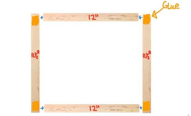 4. Junte los pedazos de madera en la cola para formar un cuadrado.