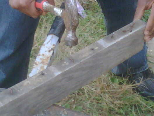 3. aplastar los clavos que no se puede quitar (demasiado oxidado o lo que sea)