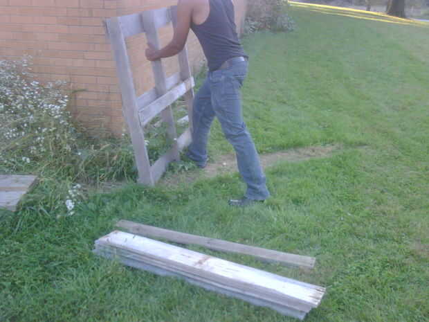 1. desmontar los palets - por tablero - sin agrietar o partir (tanto como sea posible).