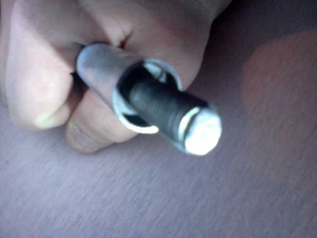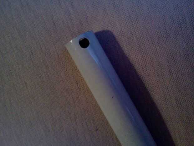 Bueno primero tienes que perforar un agujero en un extremo del cuerpo de la pipa, necesitan estar cerca del borde, depende de cuánto es su botón. Cuando hayáis hecho esto, usted debe de martillo en el otro extremo un tornillo redondo o algo redondo, para que pueda regular la presión del muelle y obtener algunas fotos mejor.