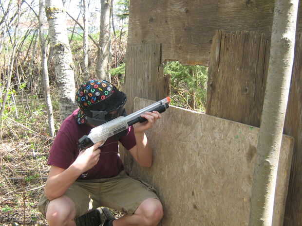 cañones de aire. Diversión para toda la familia. Dispara a cualquier cosa, realmente. Botellas de agua para los niños, botellas de licor para papá, utensilios de cocina para mamá, comida para el perro, los animales de perro (Kidding), relleno para lo