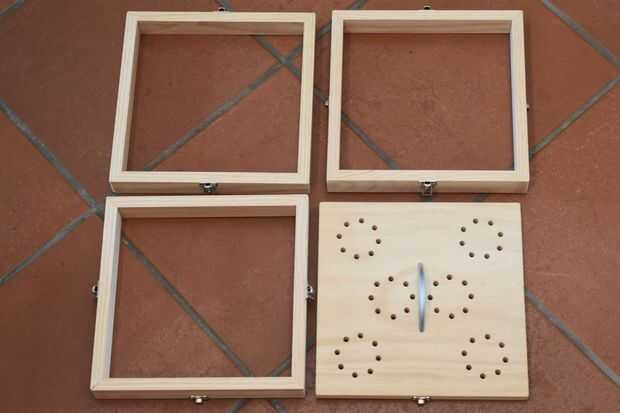 El diseño básico utiliza marcos rectangulares para las bandejas y la base (que simplemente tiene patas de aluminio). La tapa inicial fue hecha de tablones de pino que estaban se unió a la galleta, pero que era complicado de construir y encogido como secado por lo que me he ido para una tapa de madera contrachapada de 12mm en lugar de otro.