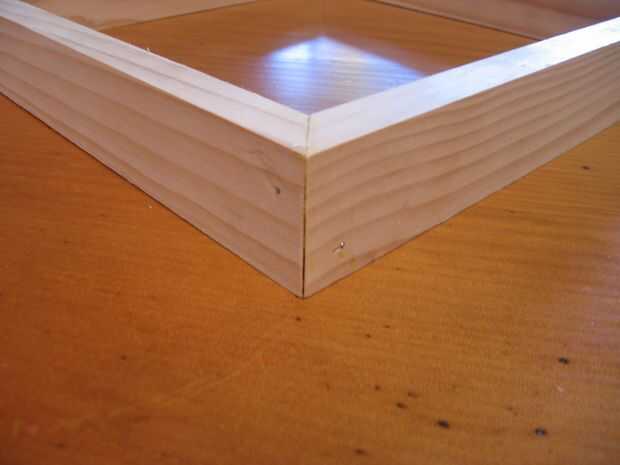 Una vez que los ángulos de corte, necesita probar colocar las piezas en su plantilla – dependiendo de la exactitud de los ángulos, deben encajar muy bien. Si el marco está un poco demasiado grande para la plantilla, la arena los ángulos en uno o dos lados hasta que se ajuste bien. Si la plantilla es demasiado grande, encogimiento que moviendo el capas piezas hacia el interior, asegurándose de que permanece cuadrada.