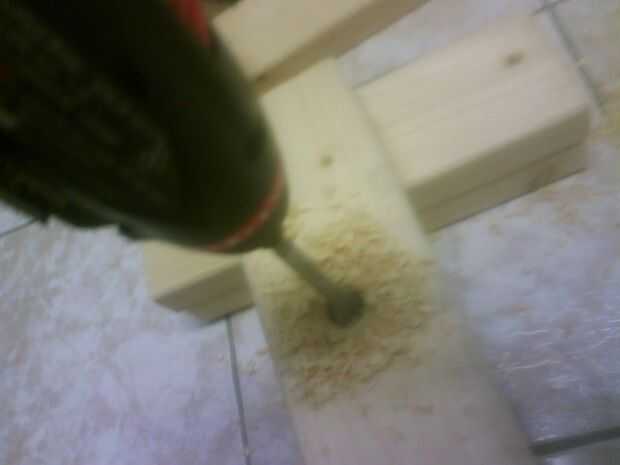 Perfore el 2 x 4 - tratar de hacer lo mas recto posible.