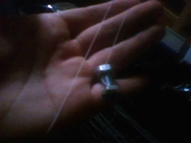 A continuación, tire de un extremo de cada hilo a través de una tuerca hexagonal y atornille en su lugar.