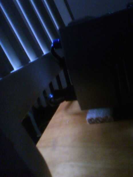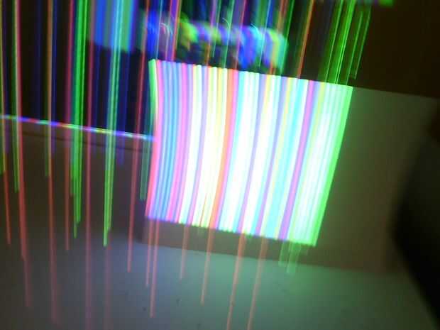 Una vez que estás centrado, los cables probablemente se ven algo como la imagen 4 a continuación - con cada alambre que tiene bandas de luz y la oscuridad. Esto es debido a que el proyector es de inclinación. Solucionar este problema inclinando el proyector derecho e izquierdo.
