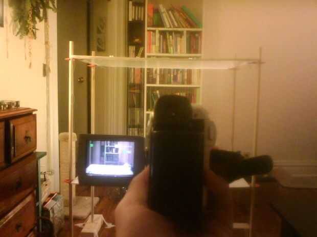 Cuando encuentre este punto, tomar su videocámara o cámara digital y poner en ese punto (imagen 1 y 2). Si usted está exactamente donde usted necesita estar, verás todos los cables equidistantes uno del otro. En cualquier otro lugar y a superponerse. Encontrar ese punto caliente y poner allí tu proyector.