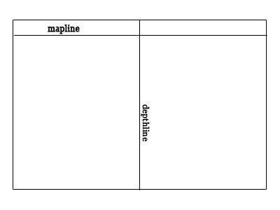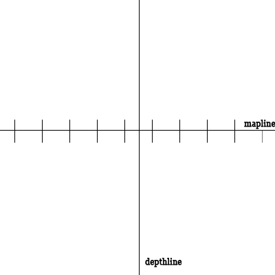 Donde el mapline y la línea de profundidad es el centro de su mapline. Dibujar las marcas de graduación en el centro de su mapline, salir en cualquier dirección. Cada marca de verificación es una "mapa" longitud de la siguiente. Medio las marcas en un lado de la línea de profundidad, la mitad en el otro. Nota: el depthline está a medio camino entre dos mapline garrapatas.