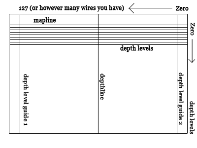 A lo largo de ambos guía nivel de profundidad, dibujar las marcas de graduación. Cada marca de verificación es una longitud de "unidad de profundidad" de la siguiente, la mapline siendo 0. Dibujar tantas garrapatas como tienes los niveles de profundidad.