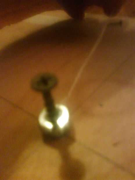 Tomar un hilo y Ate una tuerca hexagonal. Perforar un tornillo (o clavo un martillo) a través de la tuerca hexagonal en la intersección de la madera contrachapada.