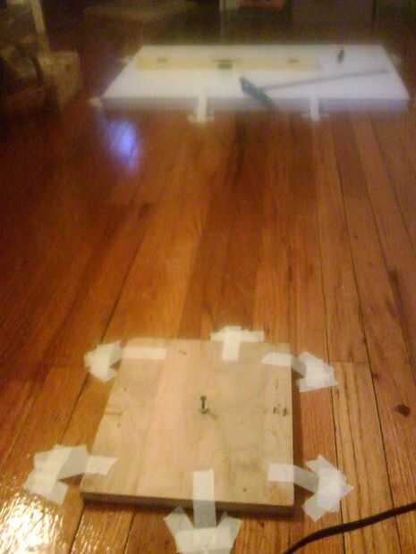 Ahora, mida donde el proyector debe ir aproximadamente (centrado en la línea de profundidad y en la medida de la mapline como su profundidad). Cinta adhesiva un pedazo de madera contrachapada en ese punto.