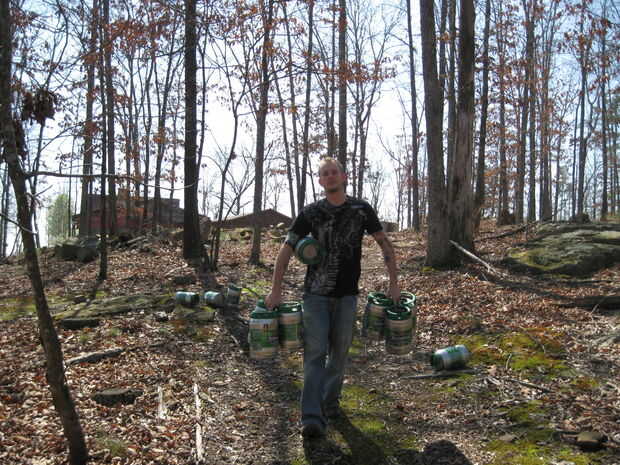 construimos un muelle utilizando barriles de cerveza mini de Heineken de 5L. Compruebe hacia fuera.