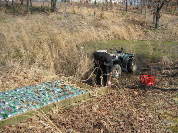 Cómo construir un dique flotante con Mini barriletes de Heineken. (4 / 5 paso)