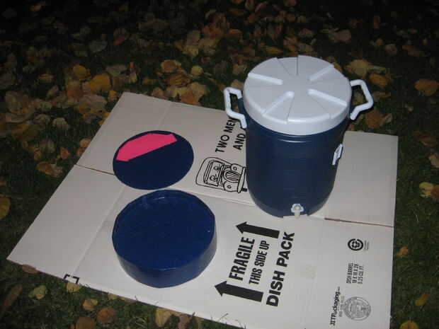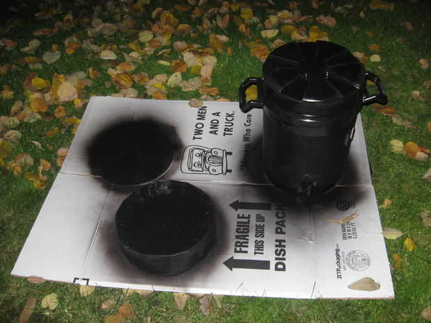 Pintar el enfriador y las tapas con su pintura en aerosol siguiendo las instrucciones en la lata.
