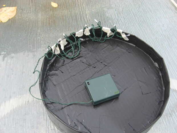 Arreglar las luces como crees que tendrá la espuma a mirar y en su lugar con cinta adhesiva. Después de la espuma me di cuenta debería haber puesto pocas luces sobre el nivel del borde y debería haber puesto más en el exterior cerca de la parte superior, que puede que desee tener en cuenta cuando arreglo tuyo.