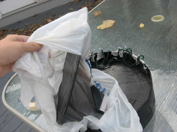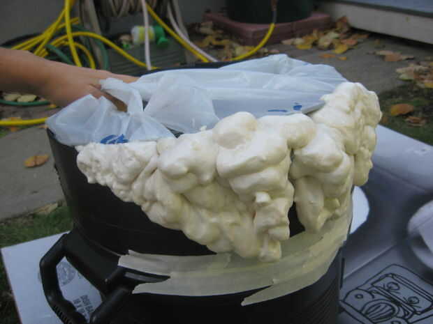 Para asegurarse de que no se pegue la tapa falsa a la espuma, sostenerla firmemente en una bolsa de plástico con la batería interior para acomodar la habitación será necesario.