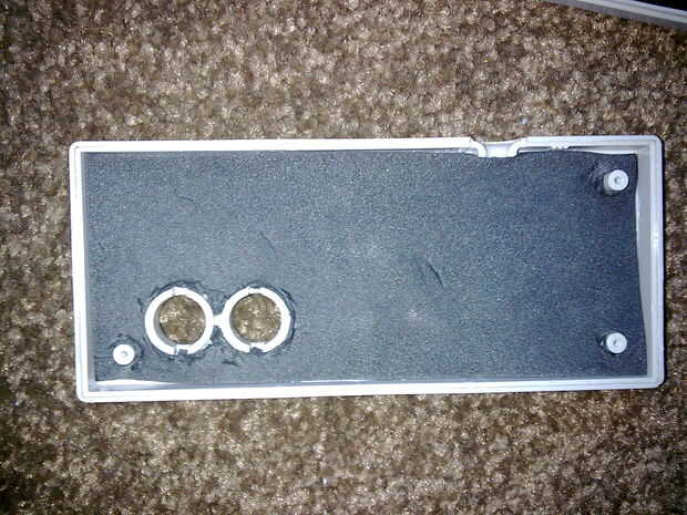 Un último toque, que no pudo ser resuelto inmediatamente con el acolchado fue el multi selector direccional a la izquierda de la unidad - esto tiene un número de partes por debajo de ella (suelta) que debían eliminarse para asegurarse de podía almohadilla la zona- y algo de él fue requerido por el dispositivo de USB dentro - pero también el disco en sí tiene un parte inferior moldeado que interconectar las piezas en la parte inferior de la consola para darle el habitual cuatro manera (o 8) movimientos direccionales. Este disco también tuvo que ser quitado, y haciendo caso omiso de mi comentario anterior sobre el artículo 8, pegamento era necesario colocar la Cruz a un punto apropiado dentro de la unidad.
