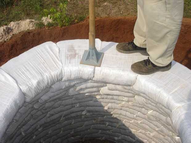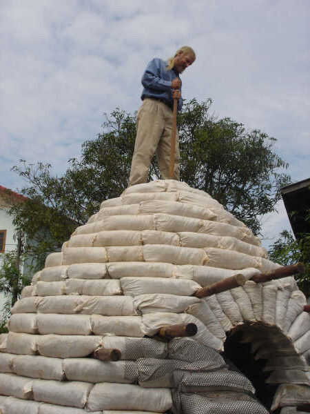 Seguir el mismo proceso de colocación y compactación bolsas. El cuervo (proyección entre cursos) aumentará cuanto mayor vaya. Utilice las líneas de cadena en cada curso para llegar a la forma deseada. Asegúrese de que cada bolso es hacia el punto central y bien empalmado para la siguiente bolsa. (Esto es lo que hace la cúpula muy fuerte).
