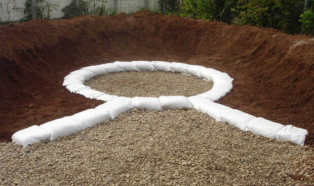 Utilice la misma Fundación construiremos técnica descrita en Instructables anterior del edificio. Esto incluye bolsas de polietileno, doble embolsada para fuerza, llenada de grava para evitar que la humedad wicking en cursos superiores. Las bolsas de sentarse directamente en la fosa de escombros. Construcción de los contrafuertes a la vez, de la misma manera. Después de terminen los dos cursos de bolsa de grava, añadir suelo alrededor de los lados de la cúpula y tamp sólido para evitar que las bolsas se mueva.