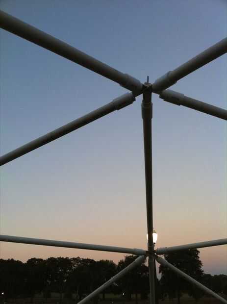 Es importante el uso de un tubo schedule 40. Clase 200 no puede manejar el estrés de sostener la cúpula juntos sin romperse. Horario 40 es lo suficientemente flexible como para permitir ser construido sin doblar ángulos exactos, pero lo suficientemente fuerte para evitar romper la cúpula.