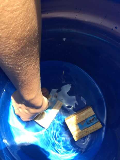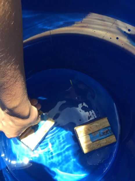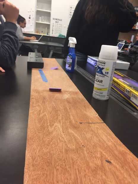 Después de calcular el diseño determinamos los materiales para el refugio de prueba resistencia al agua, y si los materiales que utilizamos se verían afectados por los rayos U.V. Empezamos por usar una muy delgada pieza de chapa para ver si lo sostendrían a nuestras necesidades y después cubriéndolo con dos tipos de tratamientos repelente al aguas al aire libre; que eran RUST-OLEUM nunca mojado y pintor de RUST-OLEUM touch 2 x ultra cubierta mate claro y pegarse hacia fuera en la lluvia y bajo luz U.V. comenzó a doblar y y casi empapado, por lo que luego se determinó era demasiado débil y demasiado delgado para soportar. Una cosa que salir de la chapa de la prueba fue que el repulsivo de agua a utilizar; Ultra de 2 x de RUST-OLEUM pintor toque cubrir mate claro, porque demostró a resistir el agua. Luego, como grupo que comenzamos a pensar en madera que sería lo suficientemente fuerte, pero no demasiado gruesa y nos topamos con un bloque de madera de cedro. Tomamos el bloque, rociado con repelente de agua y empapado en un cubo de agua para una buena 30 minutos, después de empapar cortamos por la mitad para ver si empapado a través y ninguno de los lados de madera fueron afectado por lo que inmediatamente ordenó a media pulgada de tablones de cedro que se podría cortar en cuadrados de 15 x 15". Para el interior que íbamos a usar madera, pero no pudimos conseguir las medidas exactas y era demasiado gruesa, por lo que resultó en el uso de cartón en su lugar.
