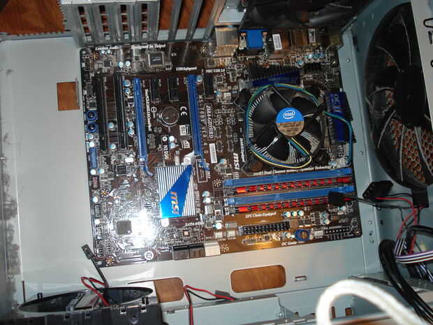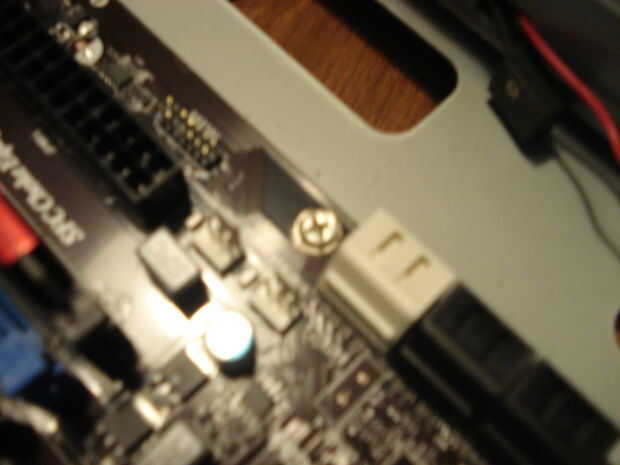 TIP: Al poner la placa madre en su caso, el espacio puede ser apretado. Tratar de pesca la tarjeta madre abajo y alineando los puertos en la placa base pletina de E/S en su caso, luego inclinar el otro en su lugar.