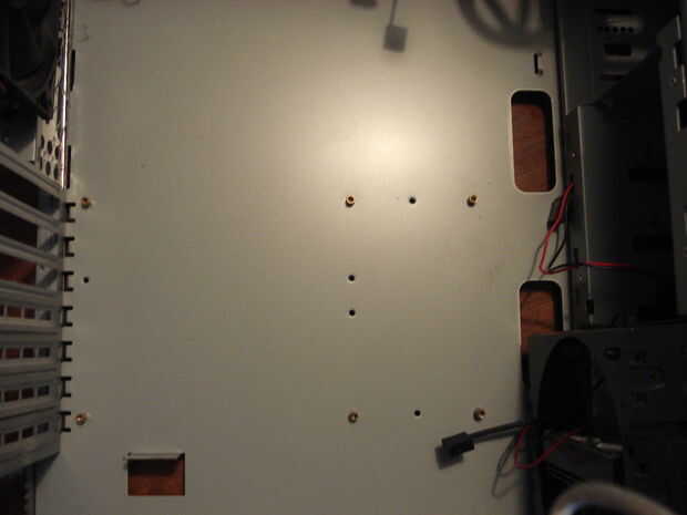 El caso debe tener separadores ya en una posición que se adapta a los orificios de la placa base. Si no coinciden, o no vienen instalados en su caso, utilizar las manos para instalar separadores en los lugares adecuados en su caso.