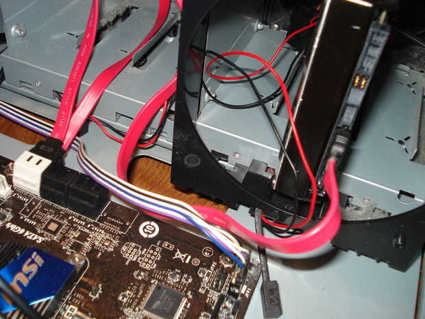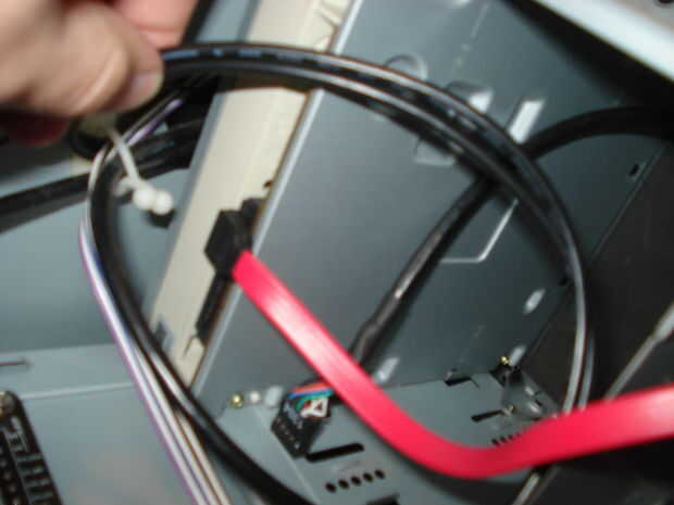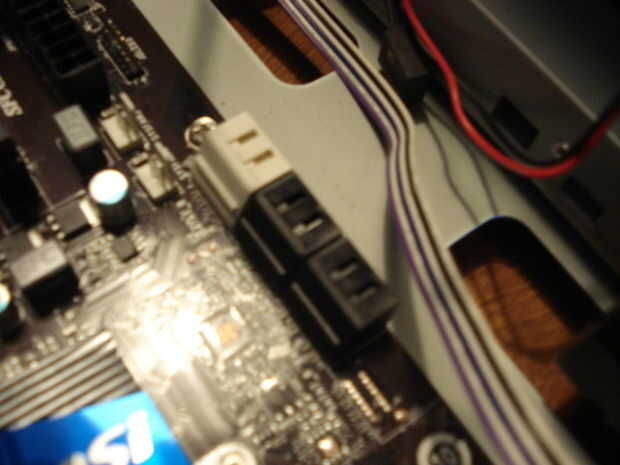 SATA es una interfaz que se utiliza para conectar algunos de los componentes a la placa madre. Los dos componentes que están conectados por SATA en esta compilación son el disco duro y la unidad óptica. Primero encontrar donde se encuentran los puertos SATA de la placa base marcando con su manual. La placa base viene con unos cables SATA y son muy fácil de usar. Simplemente conecte un extremo al puerto SATA de la placa base y luego el otro extremo en el puerto SATA en el componente que desea conectar.