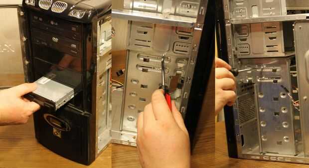 Inserte la unidad del frente de la máquina, que descarga al frente del caso. Conecte la unidad al interior de la caja con cuatro 4 tornillos, 2 dos a cada lado en los agujeros de montaje proporcionados en la unidad de disquete.
