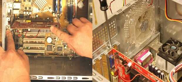 Encontrar la ranura superior más accesoria en el MB. Este socket es un zócalo AGP. Caben sólo tarjetas de vídeo AGP. Cuidadosamente Alinee la tarjeta con la ranura con la lengüeta metálica grande tocando la parte posterior de la caja del ordenador. Presione firmemente hacia abajo hasta que la tarjeta esté completamente asentada en el zócalo, la gran ficha debe sentarse contra el caso. Inserte el tornillo en la tarjeta de video y la caja y apriete, esto mantiene la tarjeta de movimiento al fijar los cables. No aplique fuerza excesiva como la tarjeta de video o MB puede ser roto.