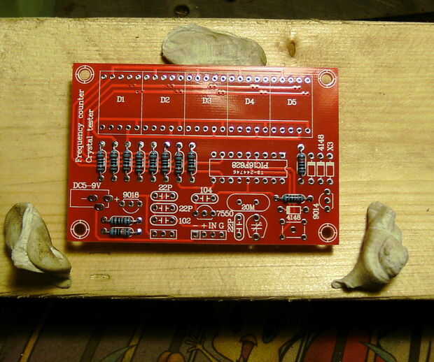OK ahora empiezo armar el tablero. Empiezo por soldadura en todas las resistencias. Generalmente son las partes más bajas. A continuación, agregar piezas en altura ascendente. Disponen de piezas más cortas primero. Pero no consigue demasiado por delante de mí aquí.