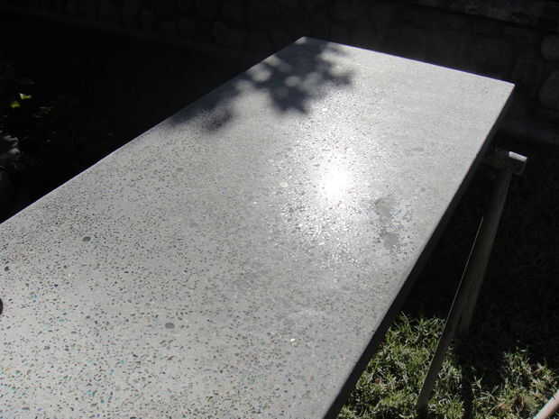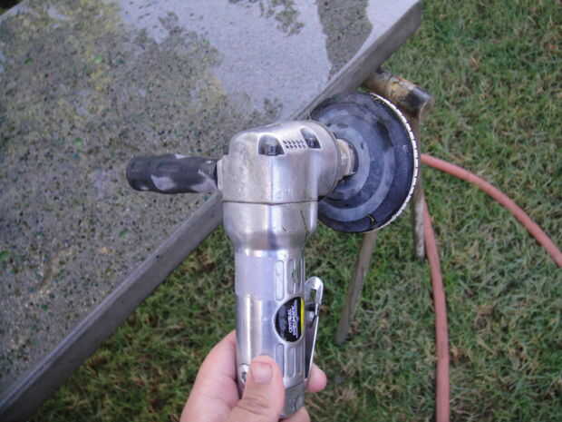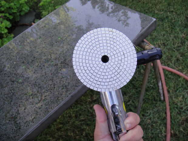 No tengo muchas fotos de este paso ya que es difícil sujetar la amoladora, rociar la manguera y tomar fotos al mismo tiempo, pero lo que quieres hacer es mantener el pulido mojado de pastillas en todo momento y lentamente y uniformemente toda la superficie con cada cojín hasta llegar a 1500 grano polaco. El sistema de almohadilla de polaco viene con una almohadilla de grano 3000, pero el sellador necesita una pequeña cantidad de rugosidad se adhieran bien. Tenga cuidado de no arañar la superficie con la amoladora o podrá contar en la superficie brillante cuando haya terminado. Cuando se ha pulido completamente, Aplique sellador a la superficie y dejar secar. Unas pocas capas pueden desear. Pula la superficie con cera en pasta y limpiar con un paño limpio y suave o una toalla seca.