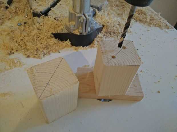 La construcción de bloques a colocar entre el armario y el escritorio. Son alineados por clavijas, así perforaciones en estos bloques y por debajo del escritorio.