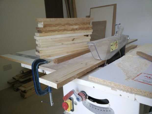 Pasar todos por un cepillo para que se obtenga una superficie plana. El plano de los bordes para que se obtenga un ángulo de 90 grados entre cara y borde. Utilice a un cepillo para disminuir el stock a un grosor uniforme; para este proyecto usé 18mm.