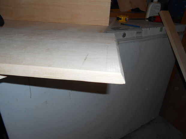 Una vez cortada, la arena de sus estantes. Uno de sus estantes tendrá que tener sus lados cortadas en un ángulo que será cerca de la parte superior y en la curva de la embarcación. Para obtener este ángulo, aproximadamente Coloque en su lugar y marque con un lápiz. Coloque su sierra de mesa Sierra/mitre en ese ángulo.