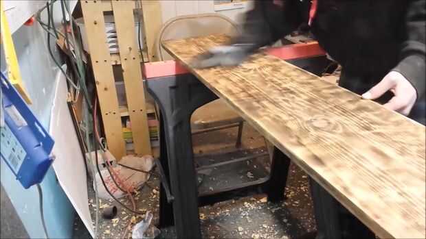 después de que la madera fue enterrar ligeramente lijada para levantar el grano y deshacerse de cualquier madera realmente quemado