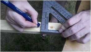 B. Utilice lápiz y cuadrado de la velocidad para darte una línea de cuadrados a la sierra colocando el lápiz en la punta de la "V", manteniendo la velocidad cuadrada plana contra la Junta y el "labio" de la Plaza contra el borde exterior. Deslice la plaza a lo largo de la Junta hasta alcanzar el lápiz mientras mantiene la plaza en lugar de correr el lápiz hacia arriba y hacia abajo para marcar la Junta.