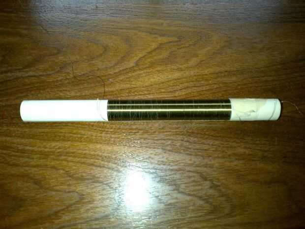 Esta toma de paso mucho tiempo hasta asegurarse de que es cómodos y tener un montón de cinta de pintor a mano en caso de que usted necesita tomar un descanso. Mi secundaria tomó cerca de dos horas al viento. Vas a querer empezar con cinta adhesiva un extremo del cable a la tubería, asegúrese de que dejar aproximadamente un pie de cable adicional para que pueda conectar al circuito del controlador. Entonces simplemente vas a enrollar el cable alrededor del tubo teniendo cuidado de no superponer el cable en cualquier lugar. Una vez terminada la bobina, (otra vez, dejar un poco alambre adicional para conectar a la carga superior) cinta el extremo del tubo para que desenvuelva mientras no esté. Ahora tienes dos opciones, puede ya sea capa el tubo entero de un epoxi de uso general por lo que nunca se derrumbará o usted puede dejarlo. Terminé solo virar unos puntos de la bobina con pegamento del gorila porque estaba fuera de epoxy. Aunque, recomiendo su bobina de epoxy de la capa!