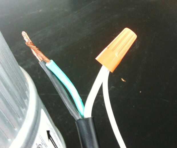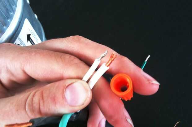 Conecte los cables de la blanco, el negro cablesy los cables de la verde. Para utilizar una tuerca para hilos, simplemente inserte (juntos) los dos extremos en la parte inferior de la tuerca para alambre. Gire la tuerca para alambre hasta que se detenga!