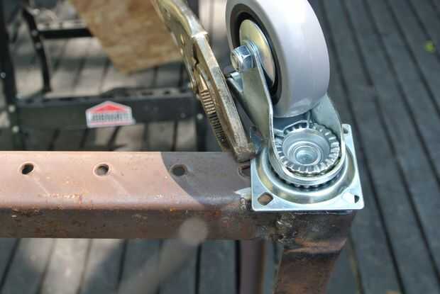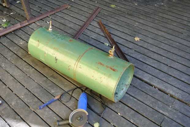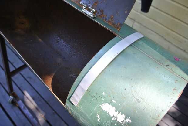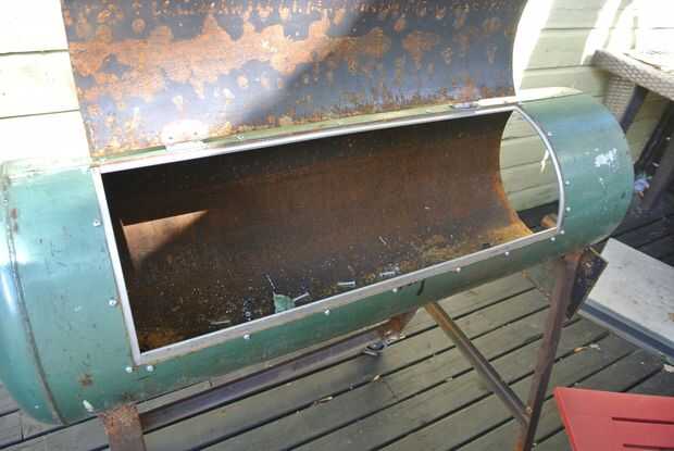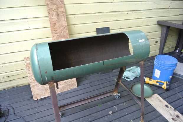 En mi estructura he utilizado un viejo tanque de expansión de una caldera. Usted puede usar lo que quieres, ser creativo, solo ten en cuenta que usted sólo necesita un lugar para la carne al descanso tan humo y carne puede moverse sobre él. Soldó con autógena en algunas piernas para hacer un marco y unas ruedas a la estructura para que todo se ruede.