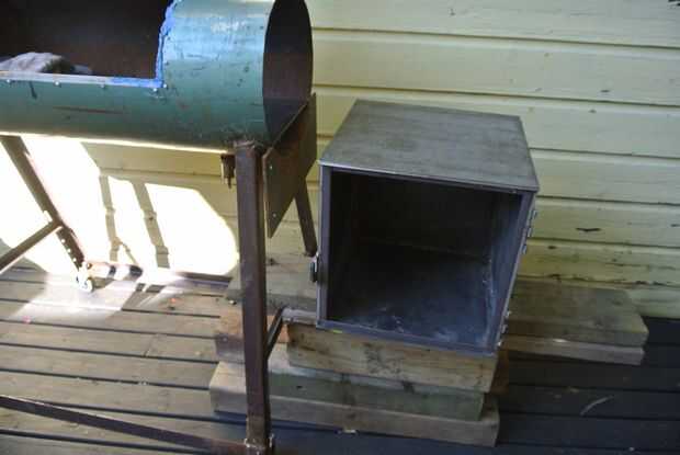 Lamentablemente no tengo ninguna buena fotos de la placa deflectora pero un poco se puede ver en esta imagen. Es el acero de la placa que está en el cuerpo del fumador, mantiene el calor directo de los alimentos, actúa como un disipador de calor y proporciona calor radiante. Se extiende la mayor parte de la longitud de la cámara de cocción y se suelda con autógena en el lugar. Por lo que el humo y el calor sale de la cámara de combustión, pasa por debajo de la placa deflectora vienen redirecciones hacia la cámara de combustión pero desde la placa deflectora hay sale por la chimenea. Cómo funciona un deflector en el contexto de un fumador obtener una mejor idea y el vídeo de Google también cubre esto.
