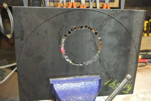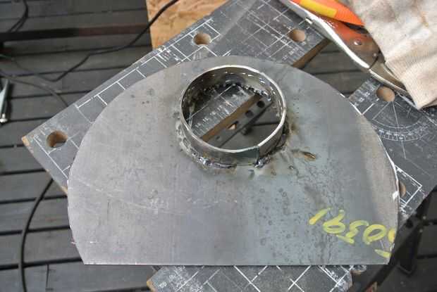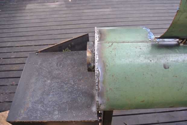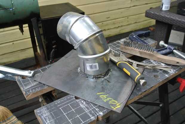 Así que el calor y el humo necesita un lugar para ir así. La chimenea está hecha de un tubo de ventilación de 4". Se fabricó una brida y conexión de chimenea.