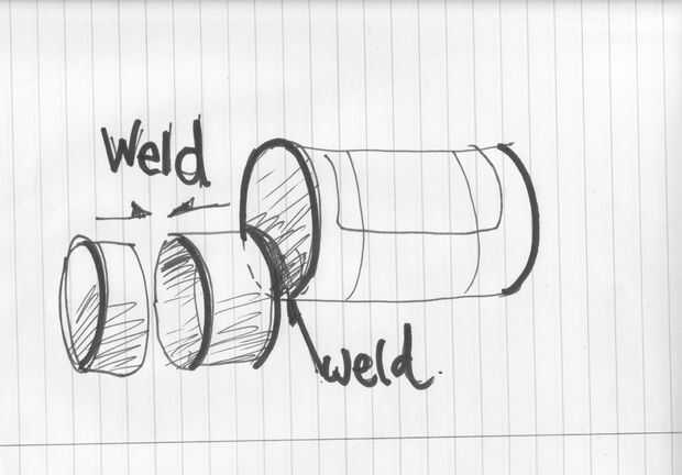 Corte bastante del labio uno de los barriles para que encajan como fuerte y Ras juntos como sea posible, así podría correr una soldadura sellarse hasta.