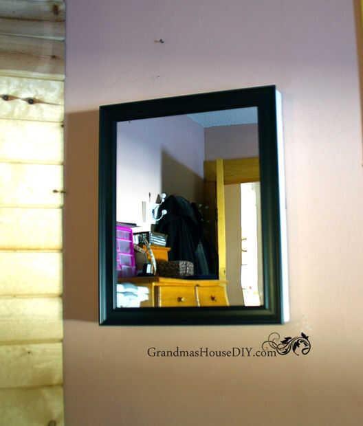 Colgar el gabinete sólo utilicé yeso anclas y dos tornillos a través de la placa trasera. Más tarde planeo volver y pintura sobre las cabezas de los tornillos por lo que son blancos como el gabinete. También he añadido un poco cerrado cierre magnético por lo que el espejo se encaja a presión (y permanece). (Sí, me di cuenta hace bastante tiempo durante este proceso que esencialmente construí a mi mamá un jeje gabinete de la medicina.)