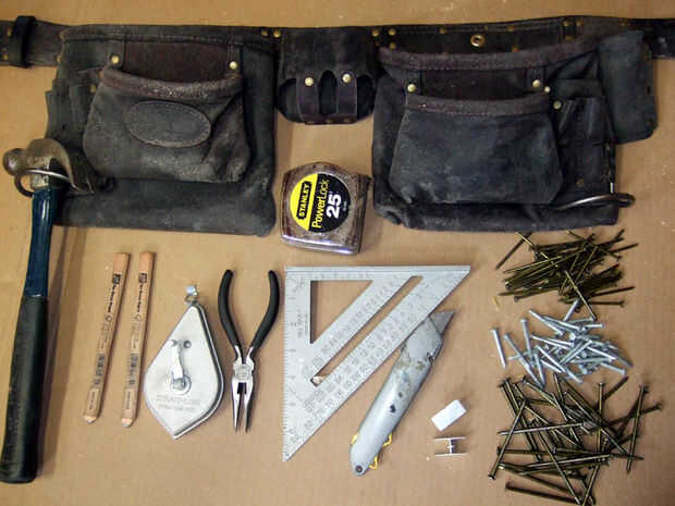 Antes de que wade en esa enorme pila de madera, asegúrese de que tener los instrumentos inanimados. A continuación se muestran fotos de un cinturón de herramientas de construcción típica diseñadas para contener herramientas y clavos mientras trabajan. Según el trabajo a mano quieres diferentes herramientas y tornillos y clavos en los bolsillos. Yo he presentado mi carga típica de estructura y revestimiento, así como para techos. Utilizar estas fotos como guía de qué tipo de herramientas necesita construir su garage con éxito y con mínimo dolor y el sufrimiento.