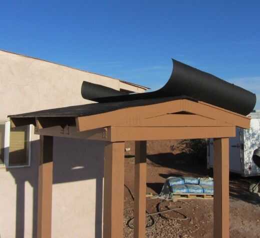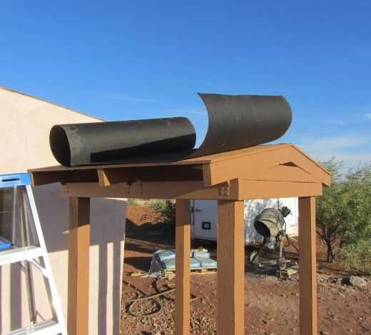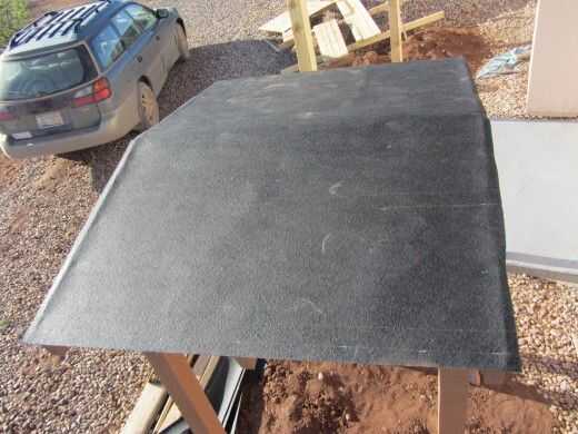 En un techo de tamaño completo, puede transportar la rueda para arriba la parte superior, rodillo hacia fuera la longitud de la cubierta e ir de allí. No tan en un techo de cuatro pies de mini-monster. En cambio, piezas de cinco pies se cortaron del rollo y sacudidos hasta la parte superior.