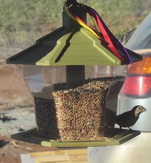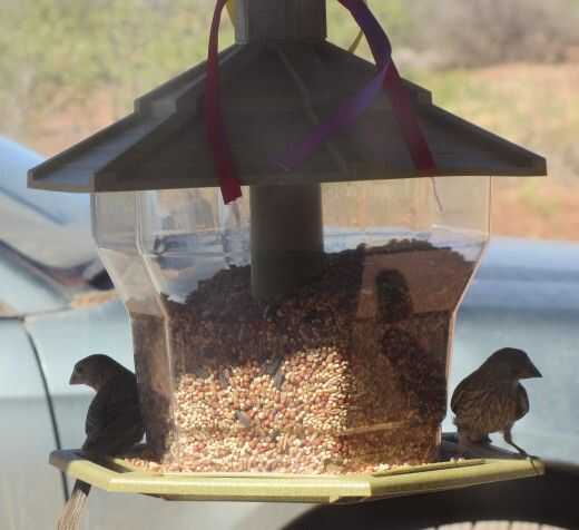 Ahora está cada vez más cercanos. Incluso cuando estoy fuera, te vuelan en a perca--no en el alimentador sin embargo, no es cerca, pero del árbol del mezquite más cercano. Que es sólo de 20 pies de distancia.