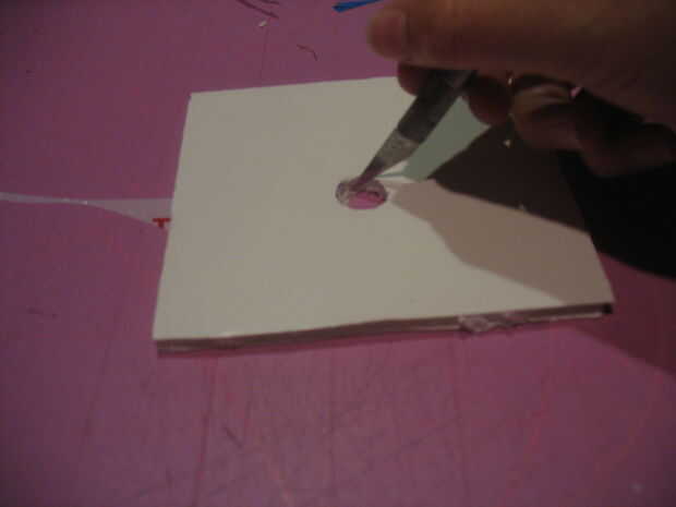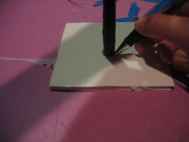 Primero tomar el cuadrado de cartón pluma y cañón más ligero y traza alrededor del cañón. Después de eso debe cortarlo hacia fuera.