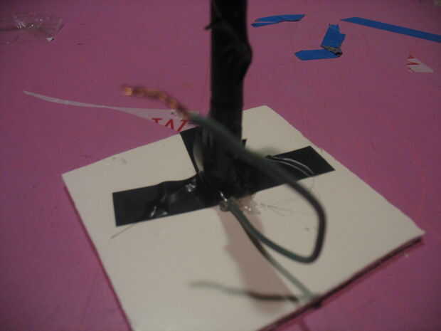 Lo siguiente que debemos hacer ahora es pegamento caliente el cilindro a la base. (quizá también quieras cinta sobre el pegamento caliente)